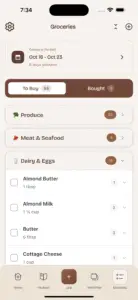 - Always up to date: Changes in your meal plan instantly update your grocery list.